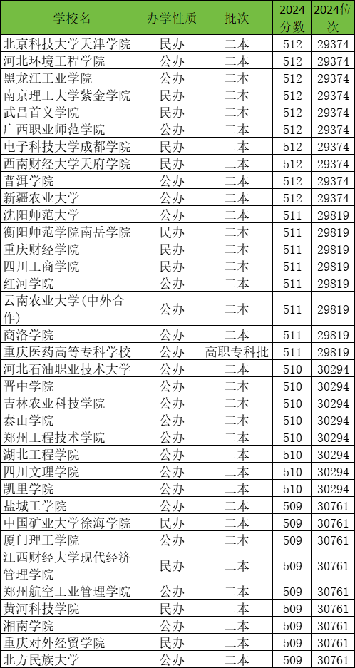云南文科成绩排名3万能上的大学具体位次为:29374名-30761名,共有35所,对应分数为512分-509分。