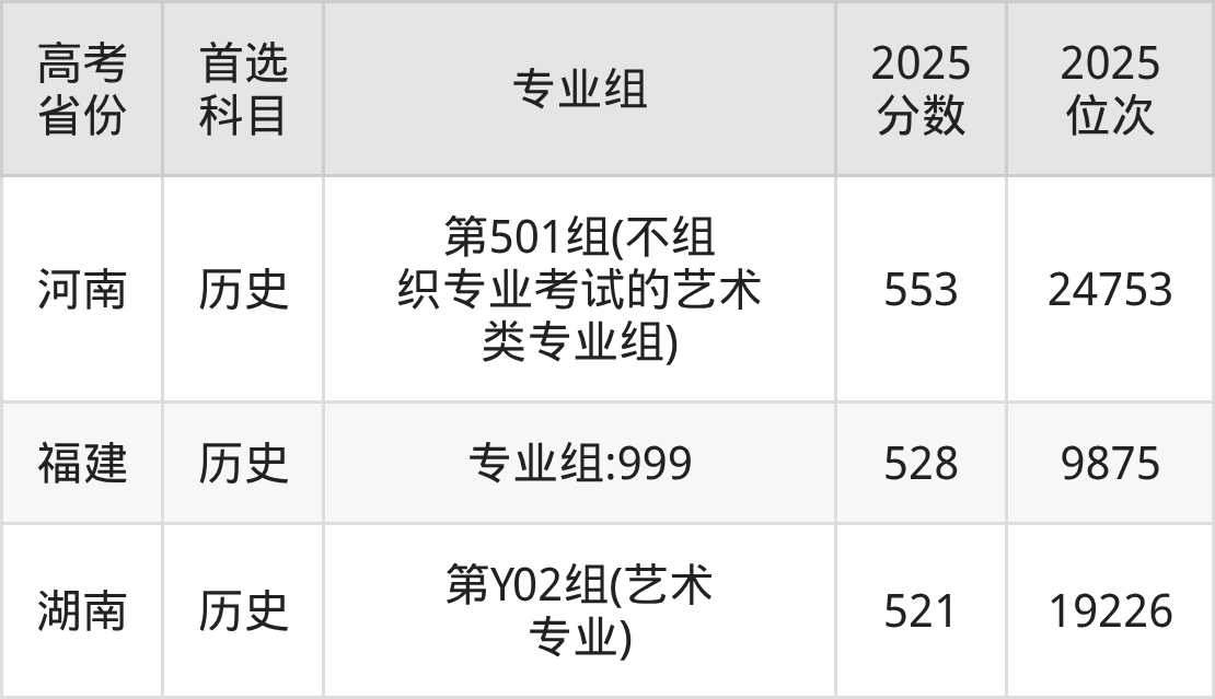 | 高考 省份 | 专业组 | 选科要求 | 2025 分数 | 2025 位次 |