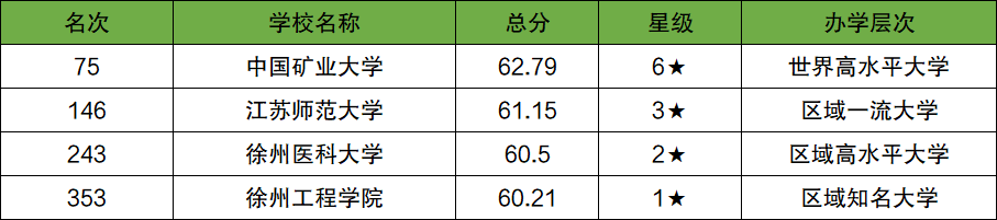 注:本文整理出的徐州各大学排名均为徐州公办本科院校的排名。