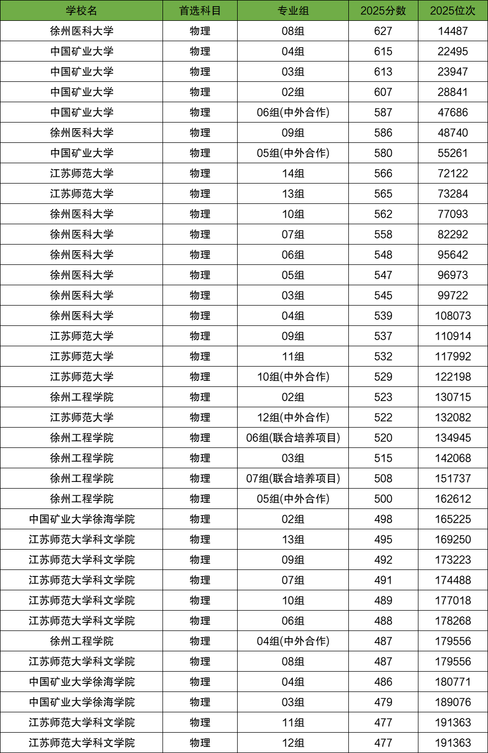 2025年徐州本科各大学专业组录取分数线(物理类):