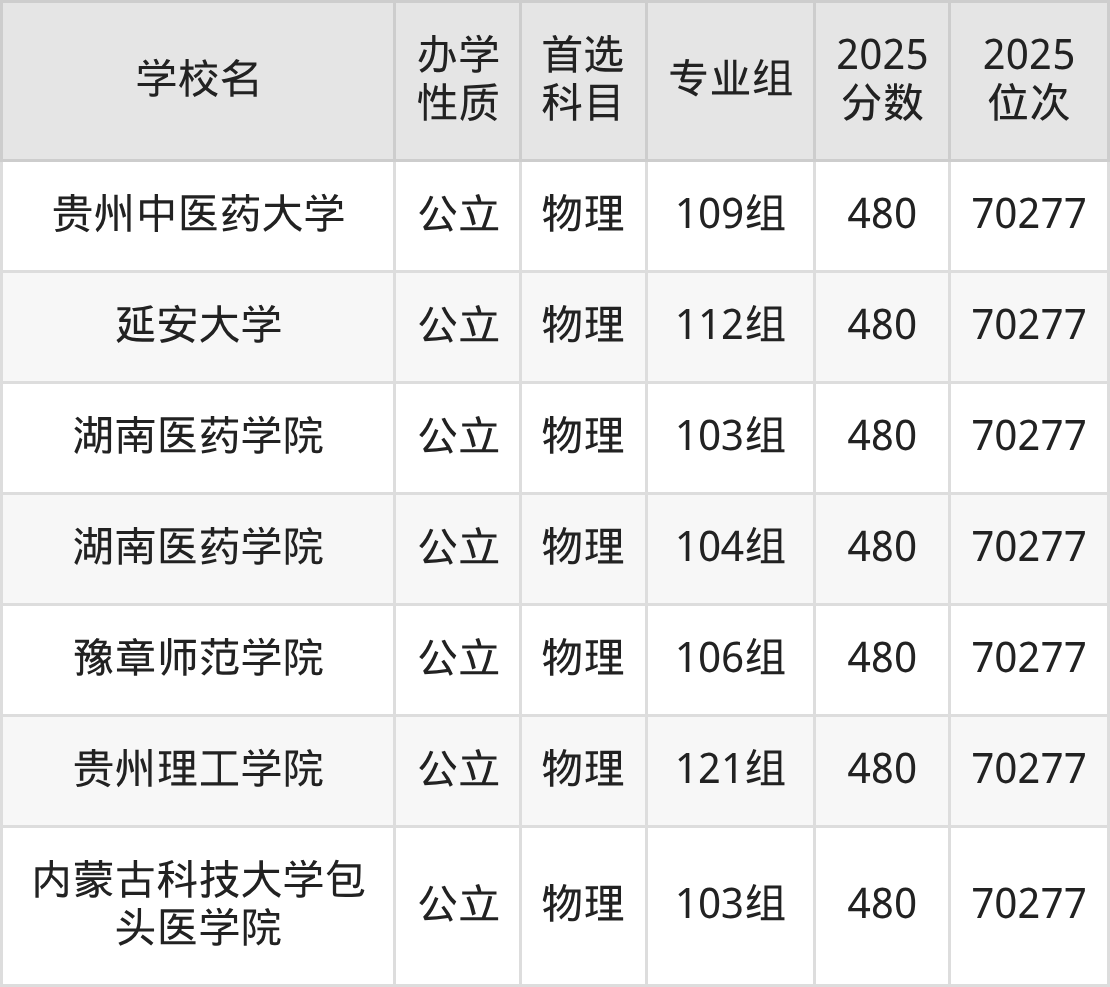 物理组481分的大学有:内蒙古科技大学包头医学院、太原师范学院、西华大学、肇庆医学院、黑龙江中医药大学等,排名是66046。