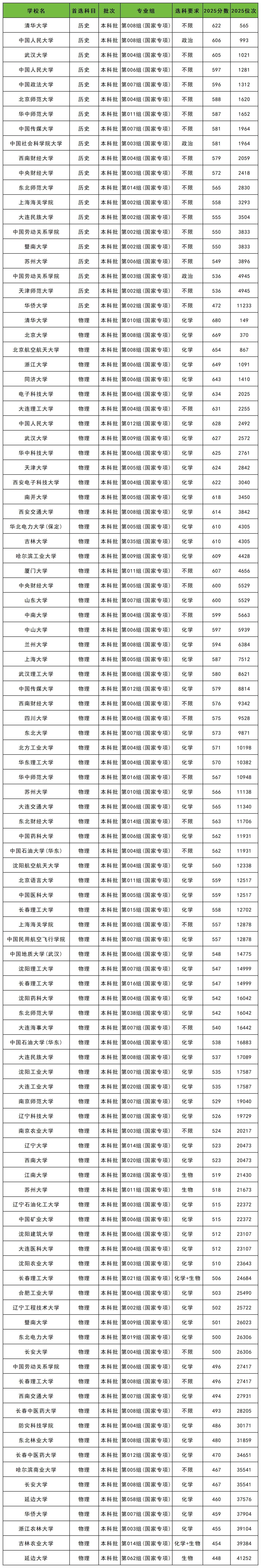 2025年吉林高校专项计划最低录取分数线:历史类548分、物理类510分。