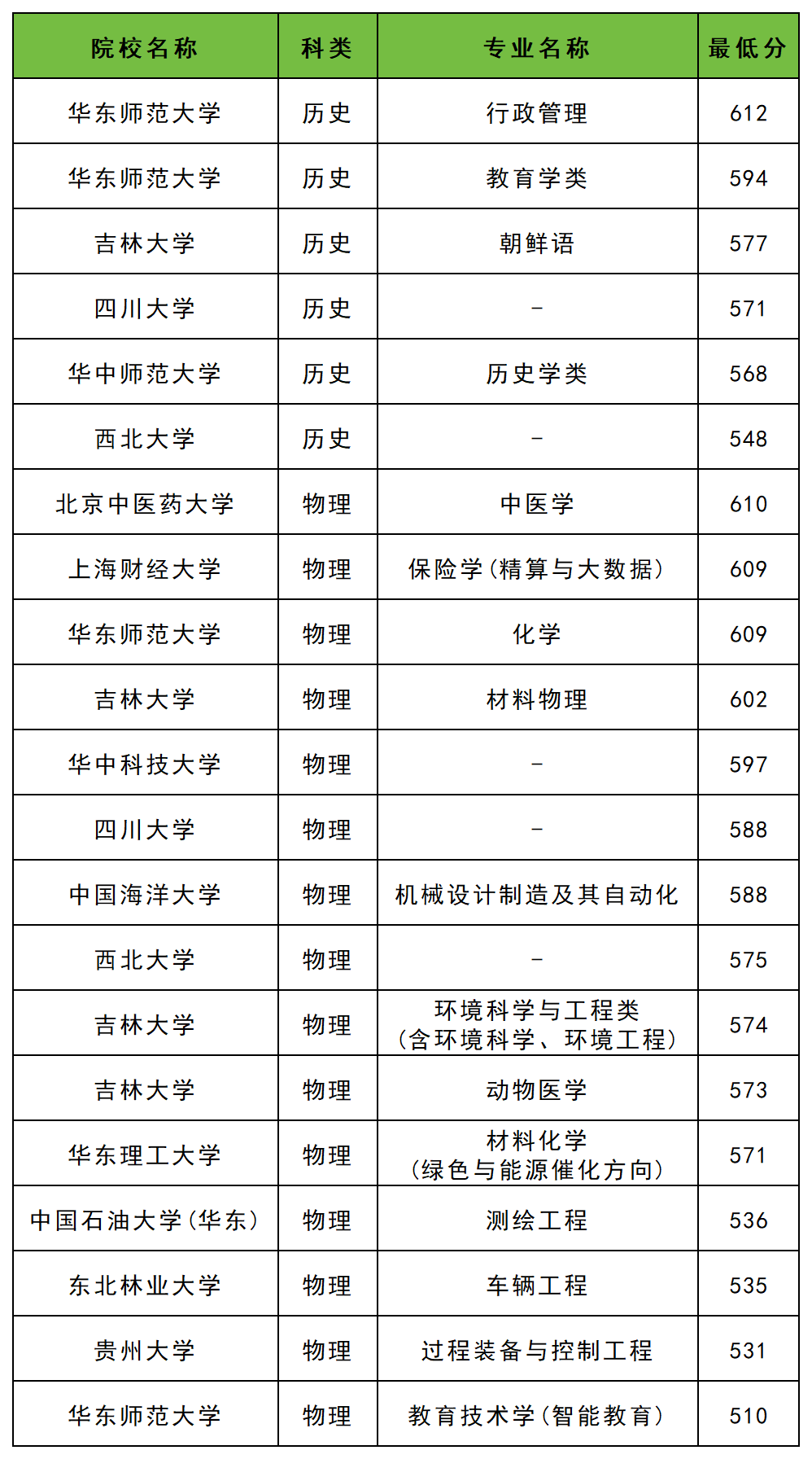 华东师范大学:历史类594分、物理类510分;