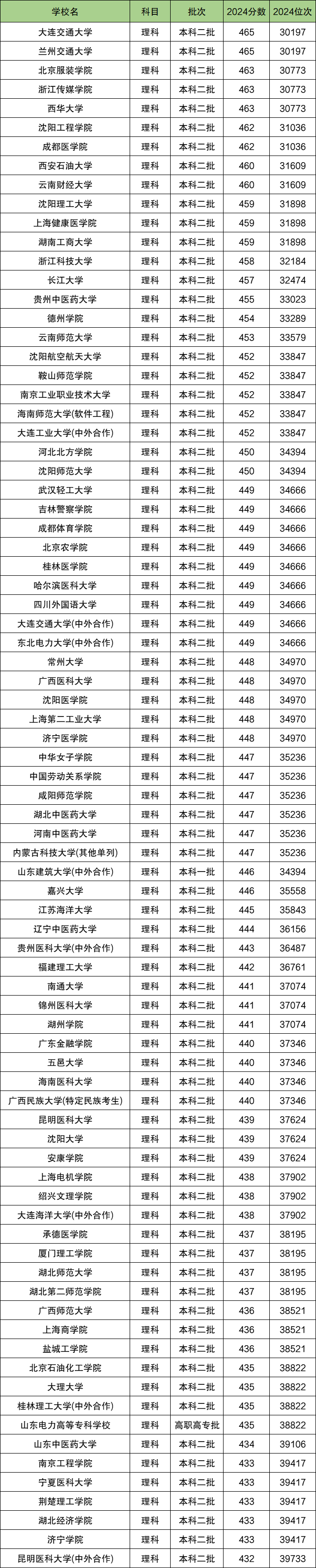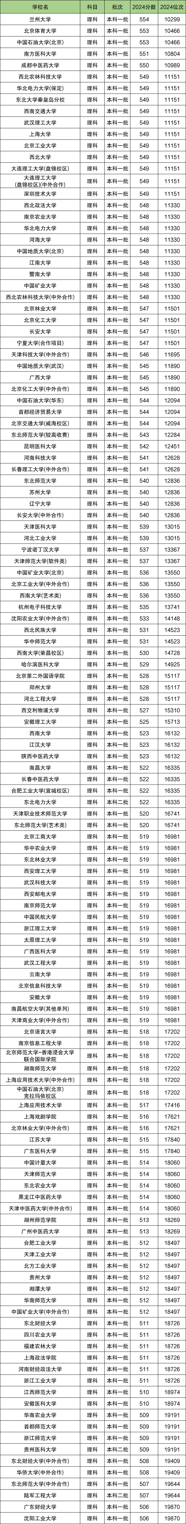 下表为2024年在内蒙古理科中分数位次在1万-2万名的全部大学。