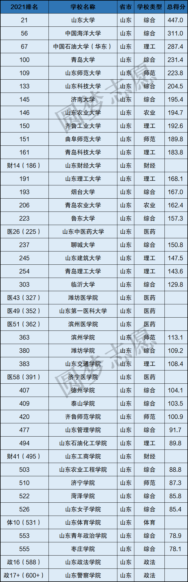 一:山东所有大学排名2021最新排名