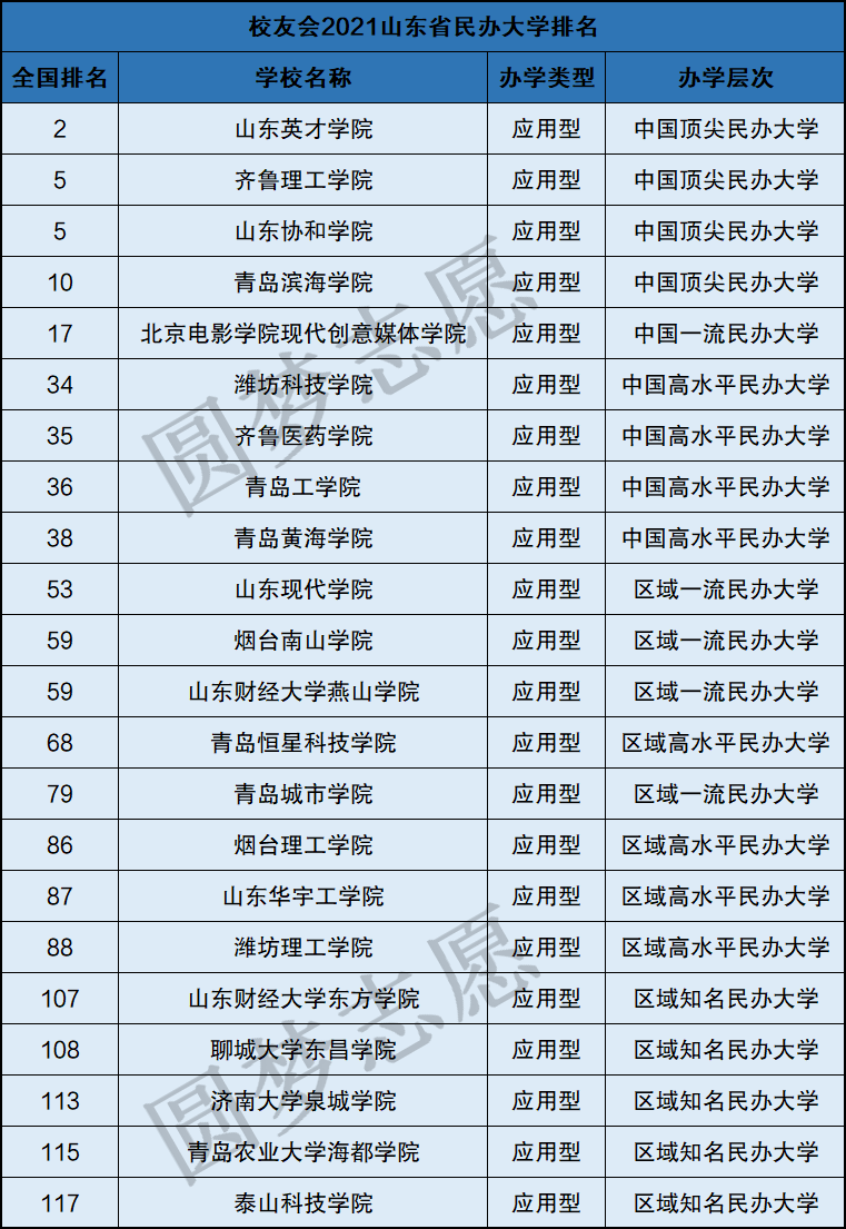 山东省内共有22所民办大学上榜,有四所民办大学进入全国前10名,分别是山东英才学院、齐鲁理工学院、山东协和学院和青岛滨海学院。