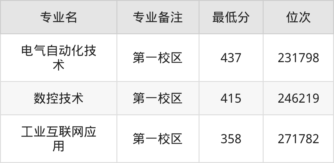 1、电气自动化技术(第一校区):437分、位次231798名;