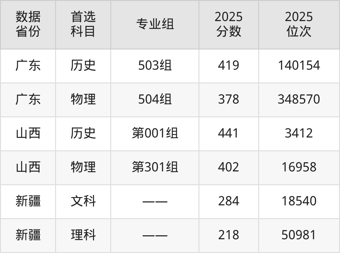 2025年苏州工业园区服务外包职业学院全国录取分数线最低是218分,最高是487分,平均分在413分左右。在多数地区录取最低分均超过340分。低于340分能上的地区只有新疆,高于平均值较多的是江西、河北、浙江和江苏等地,均有专业组最低分在450分及以上。
