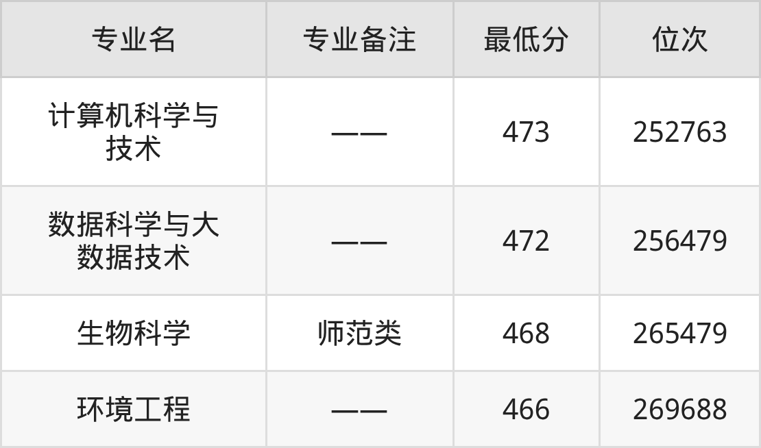 1、计算机科学与技术:473分、位次252763名;
