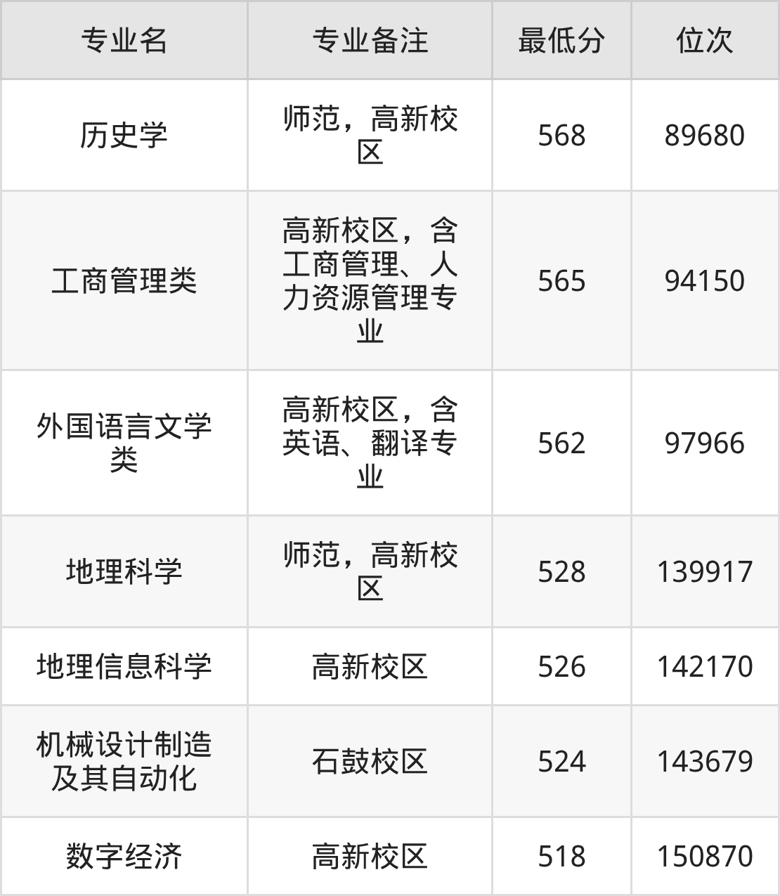 可以发现的是宝鸡文理学院最低分专业和最高分专业分数差值为50分、位次差值为61190名,不管是分数还是位次,都存在一定差距,因此各位考生在报考时务必参考专业分数线,以免浪费志愿。