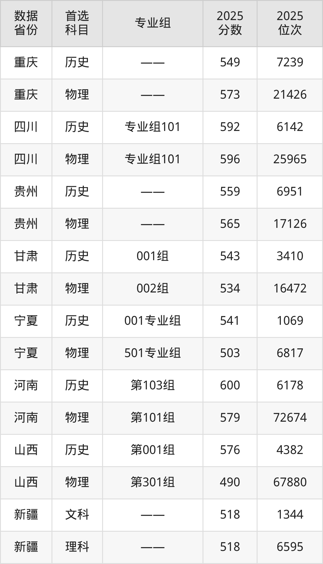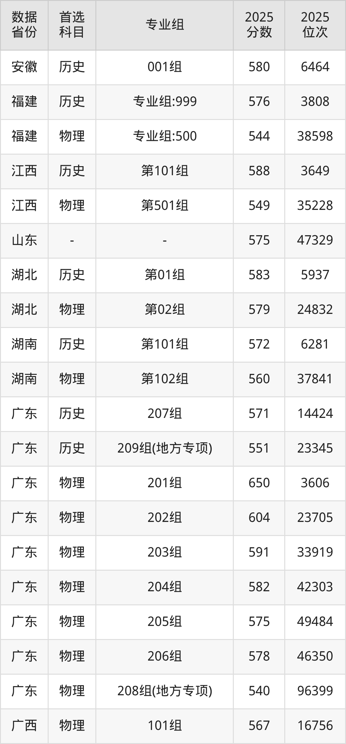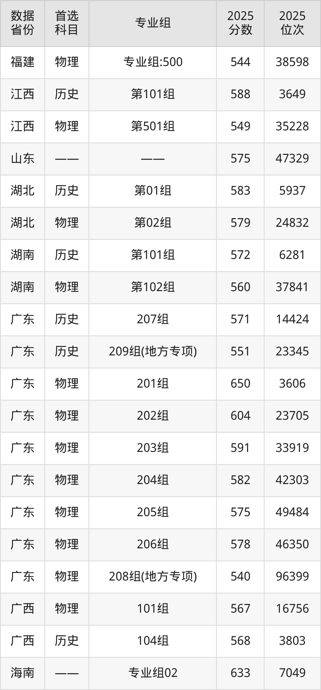 下面是南方医科大学各省最低分汇总,各专业组录取分数线可参考下方图片: