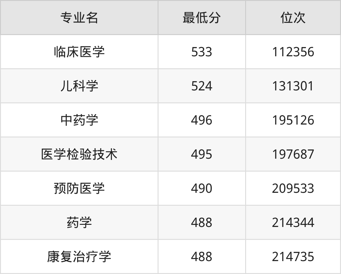 下面是甘肃医学院各省最低分汇总,各专业组录取分数线可参考下方图片: