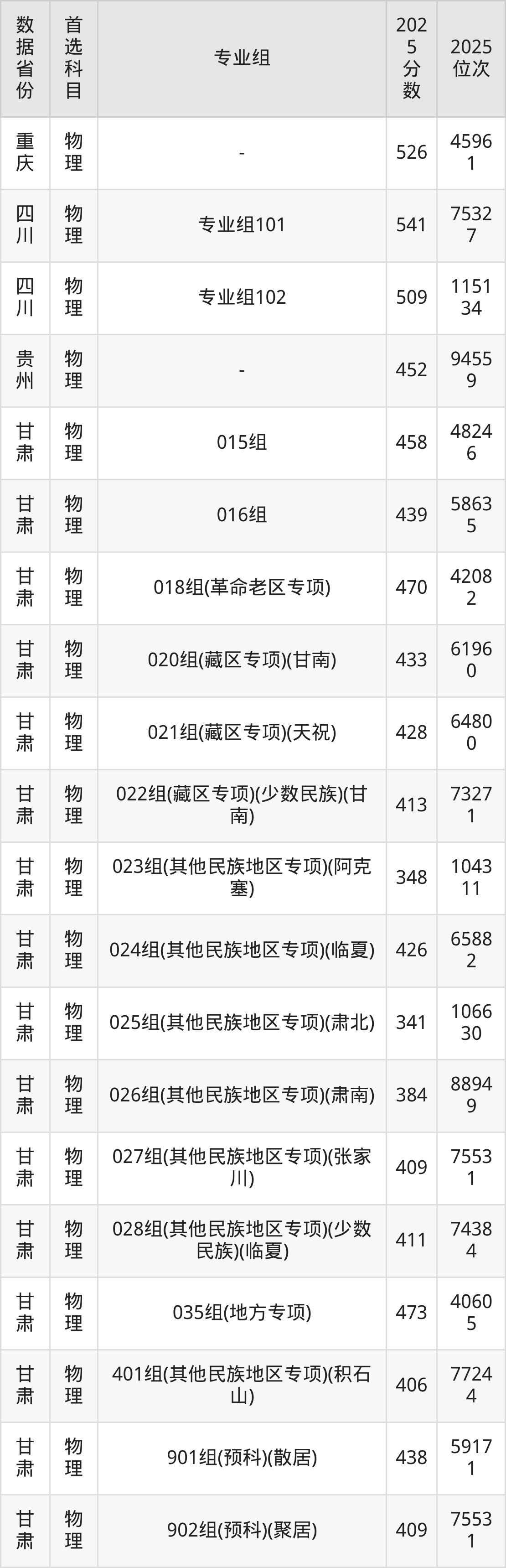 | 物理 | 护理学 | 少数民族紧缺 人才培养专项 | 1 |