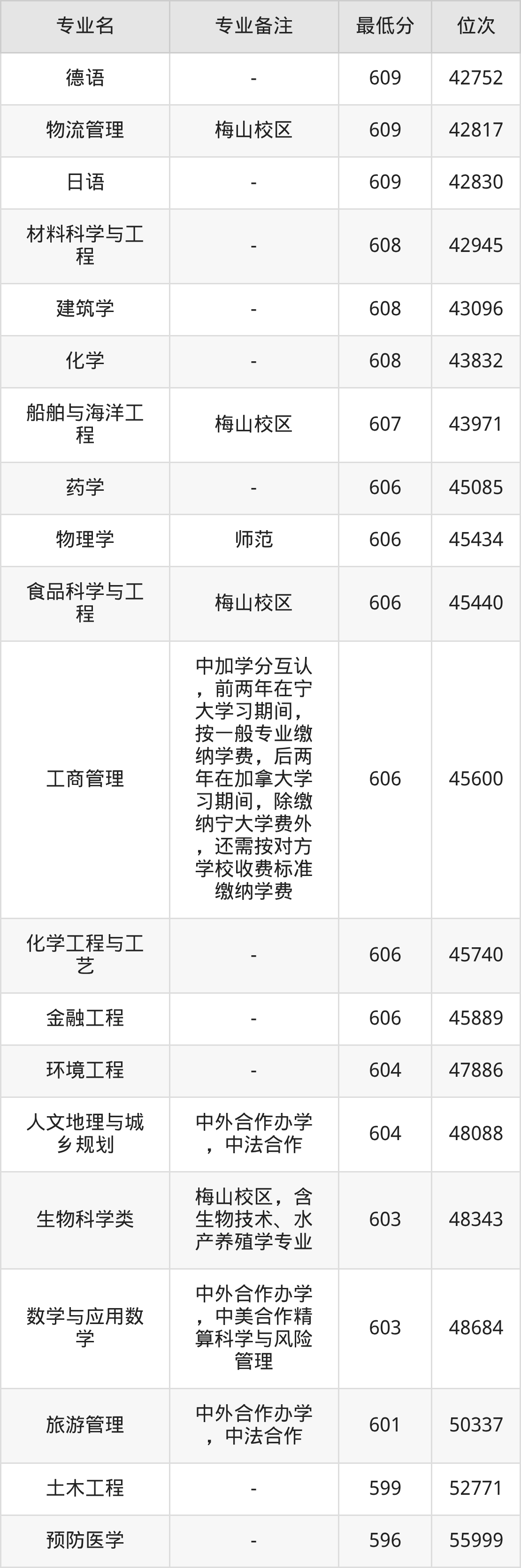 可以发现的是宁波大学最低分专业和最高分专业分数差值为54分、位次差值为44784名,不管是分数还是位次,都存在一定差距,因此各位考生在报考时务必参考专业分数线,以免浪费志愿。