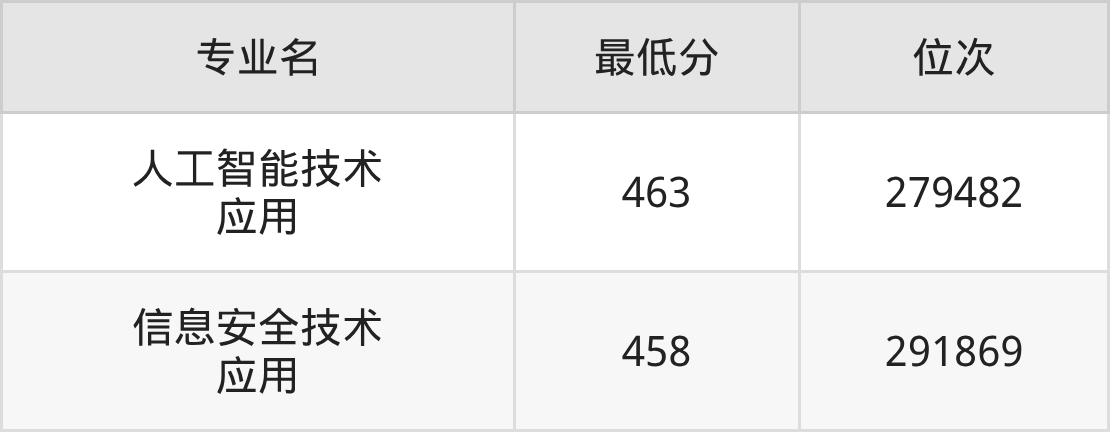 2025年北京信息职业技术学院全国录取分数线是360分到467分之间,其中在河北省录取最低分:物理组465分、历史组467分。参考山东招录数据,各专业分数线是:人工智能技术应用463分、信息安全技术应用458分等。