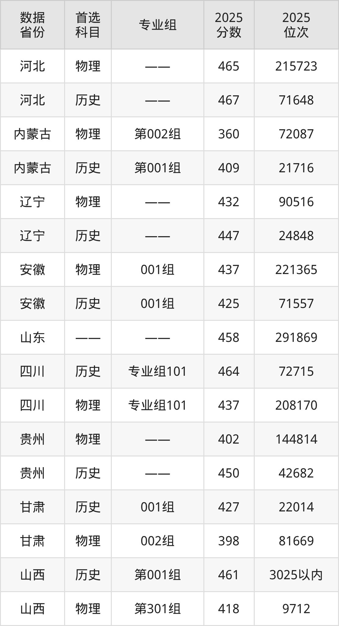 四川:历史组464分、物理组437分;