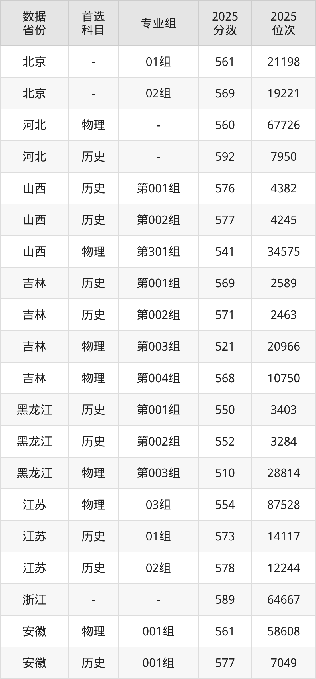 2025年广东外语外贸大学全国录取分数线最低是507分,最高是639分,平均分在566分左右。在多数地区录取最低分均超过520分。低于520分能上的地区只有黑龙江和贵州,高于平均值较多的是海南、河北、浙江和江西等地,均有专业组最低分在586分及以上。