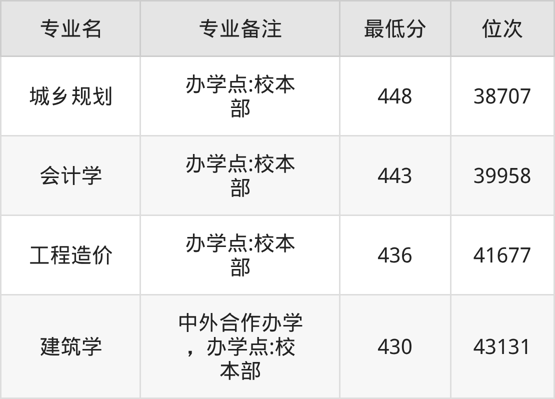4、建筑学(中外合作办学,办学点:校本部):430分、位次43131名。