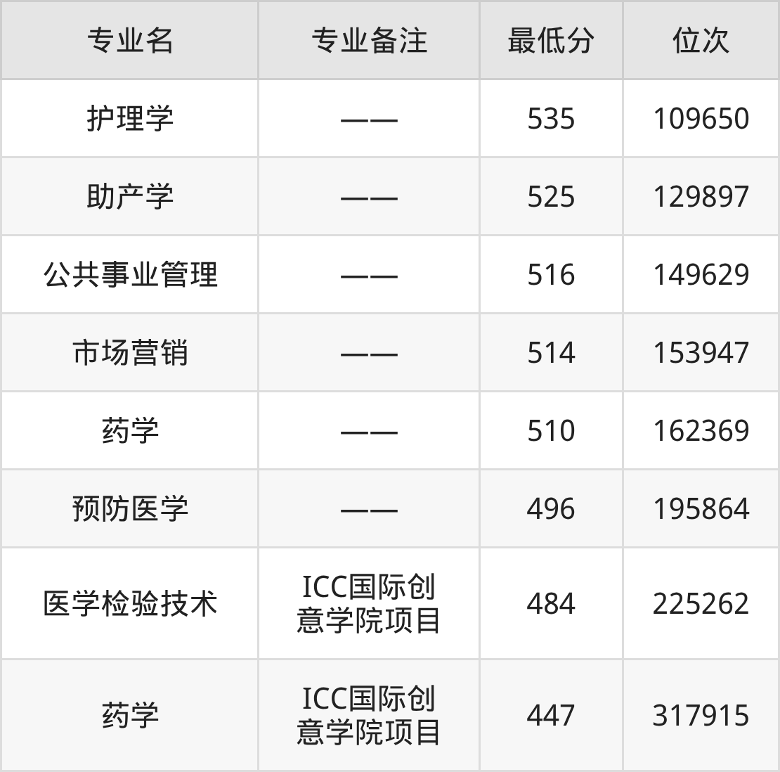 8、药学(ICC国际创意学院项目):447分、位次317915名。