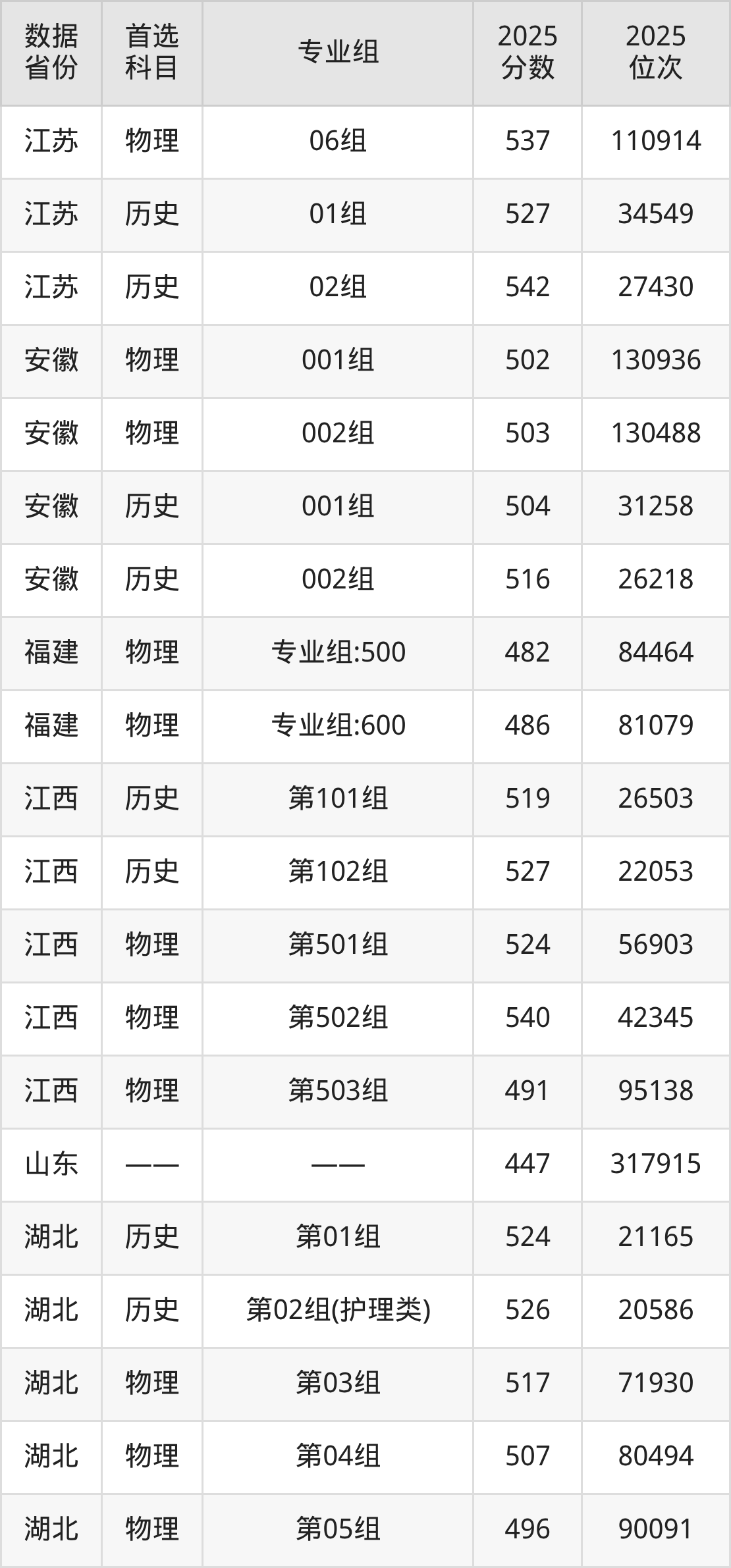 2、助产学:525分、位次129897名;