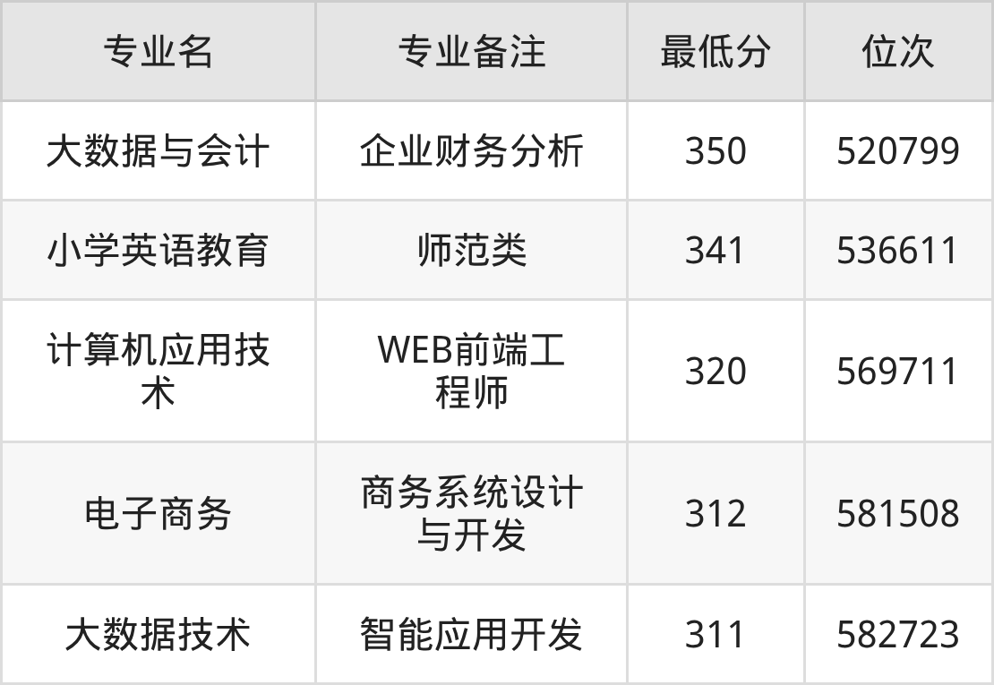 3、计算机应用技术(WEB前端工程师):320分、位次569711名;