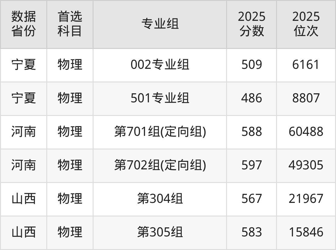 下面是陆军工程大学各省最低分汇总,各专业组录取分数线可参考下方图片: