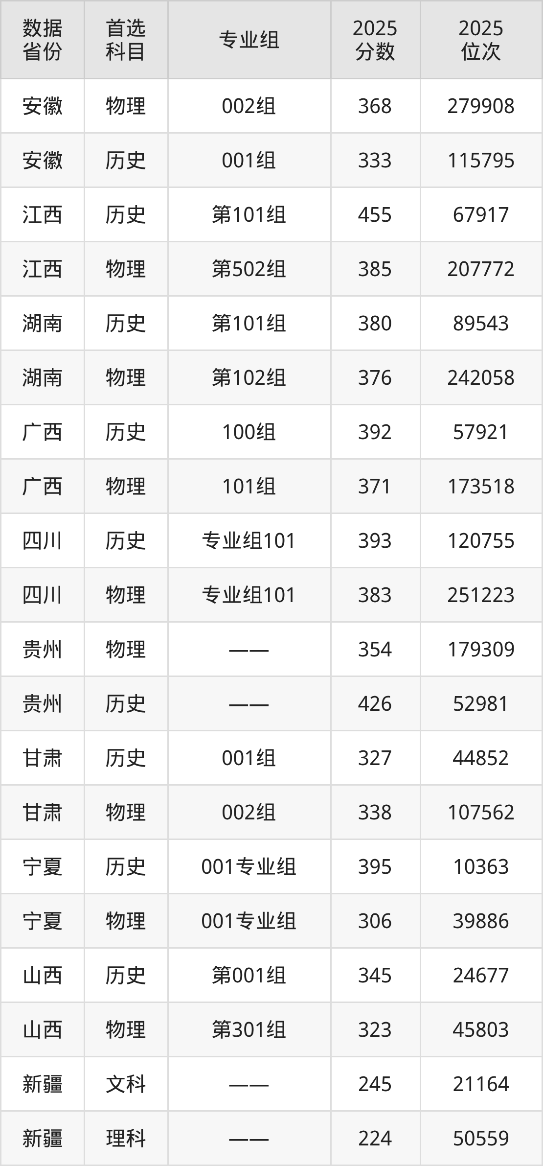 四川:历史组393分、物理组383分;