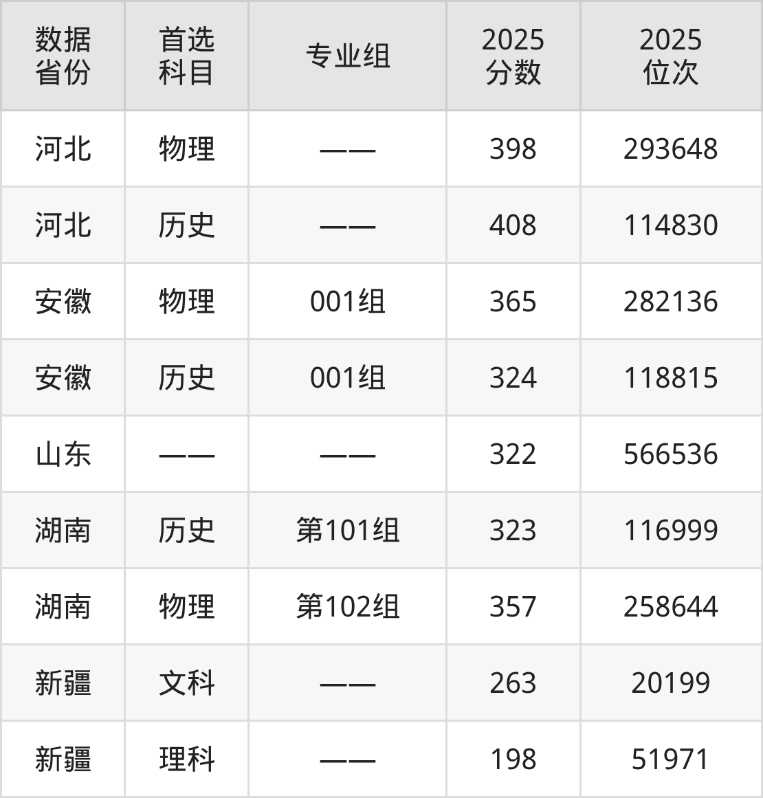10、软件技术:425分、位次368585名。