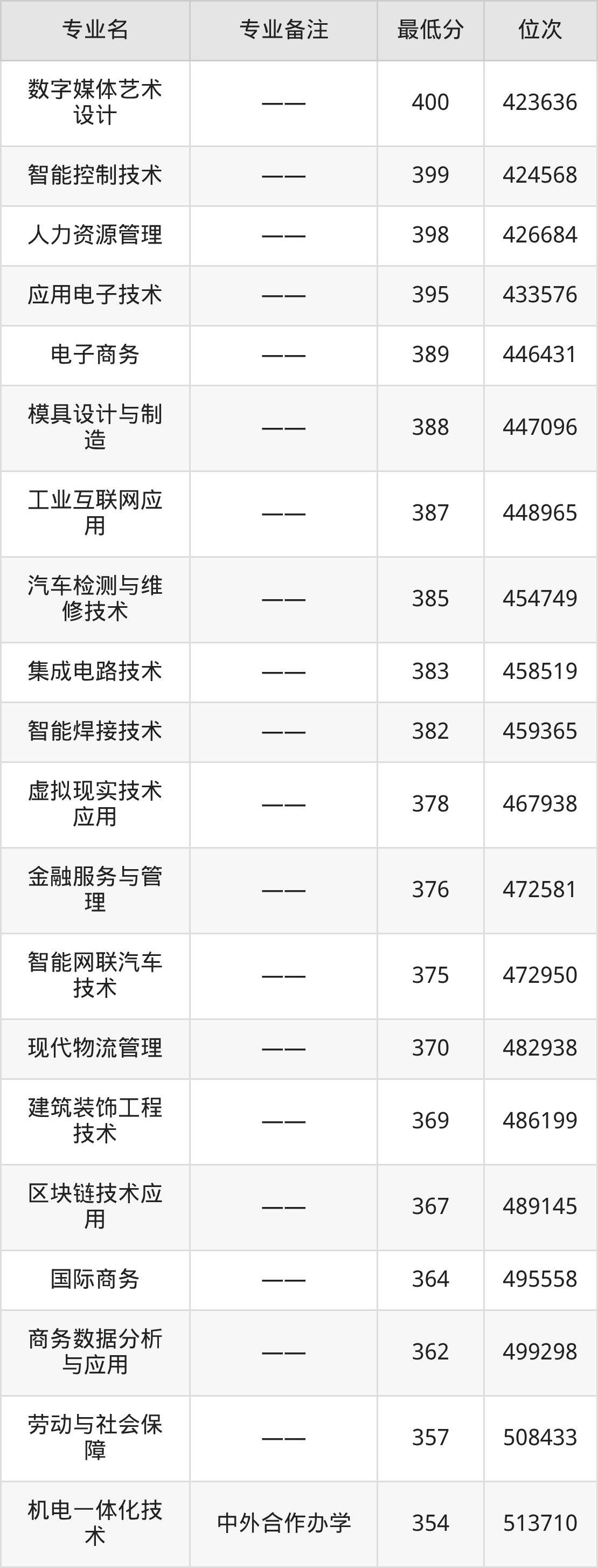 2、工业机器人技术(高职3+2贯通培养)(衔接山东管理学院机器人工程专业):474分、位次250322名;