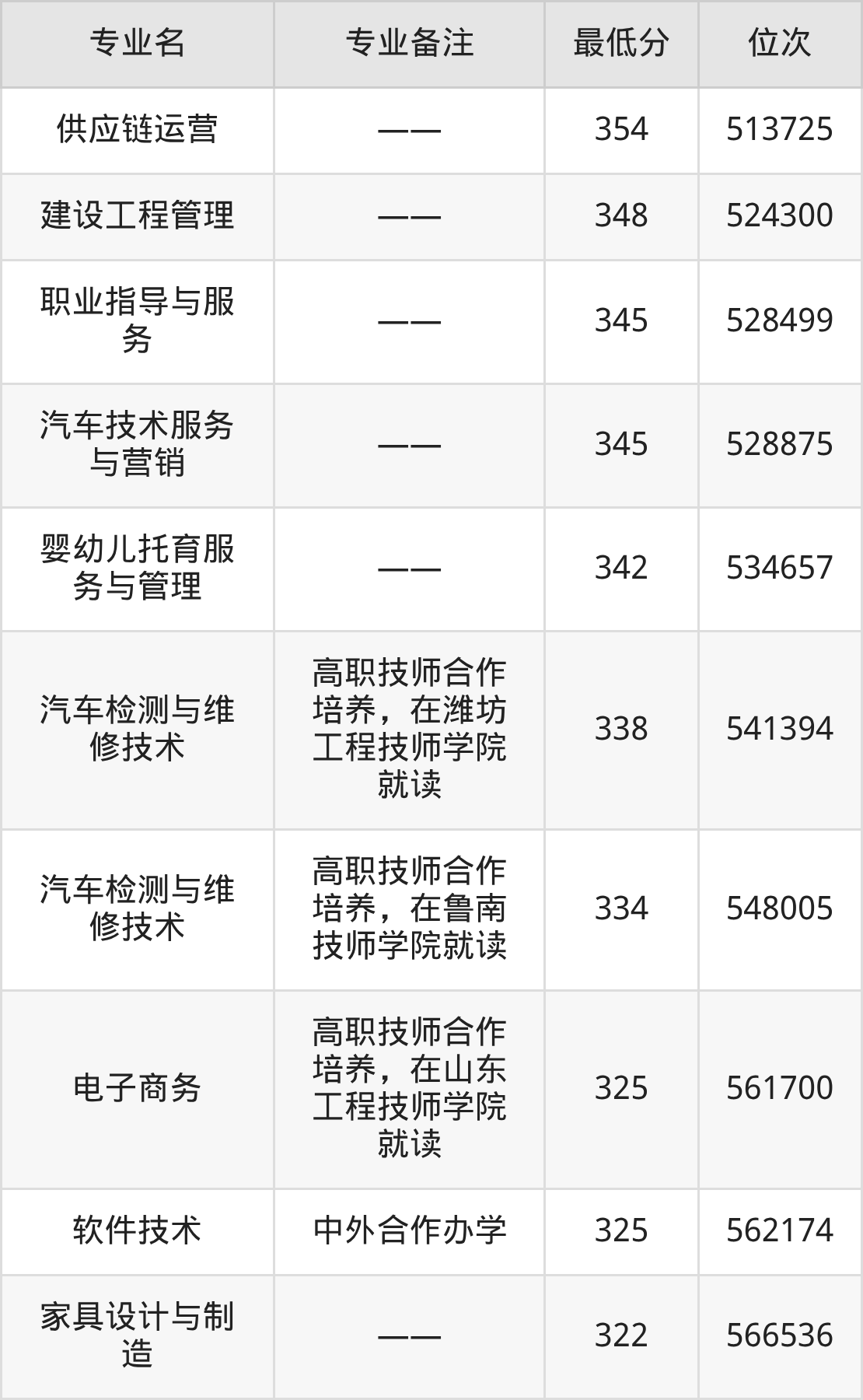 二、山东劳动职业技术学院各专业最低分
