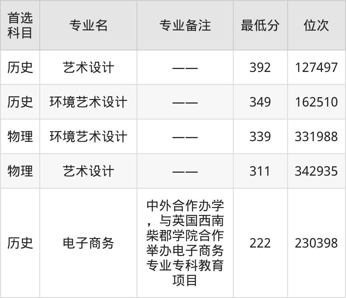 2、环境艺术设计:349分(历史类)、位次162510名;