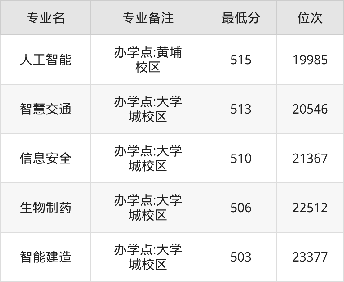 5、智能建造(办学点:大学城校区):503分、位次23377名。