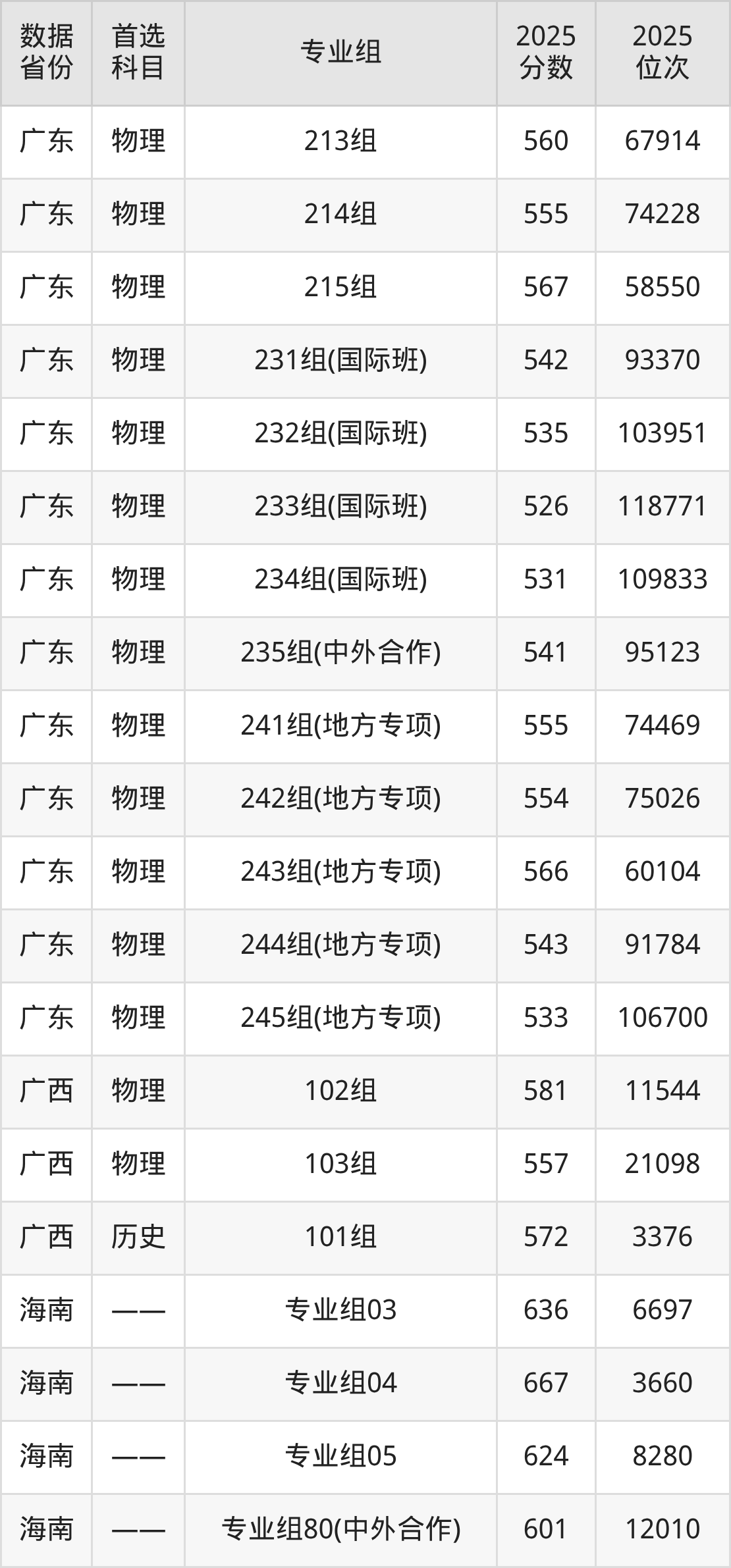 下面是广州大学各省最低分汇总,各专业组录取分数线可参考下方图片: