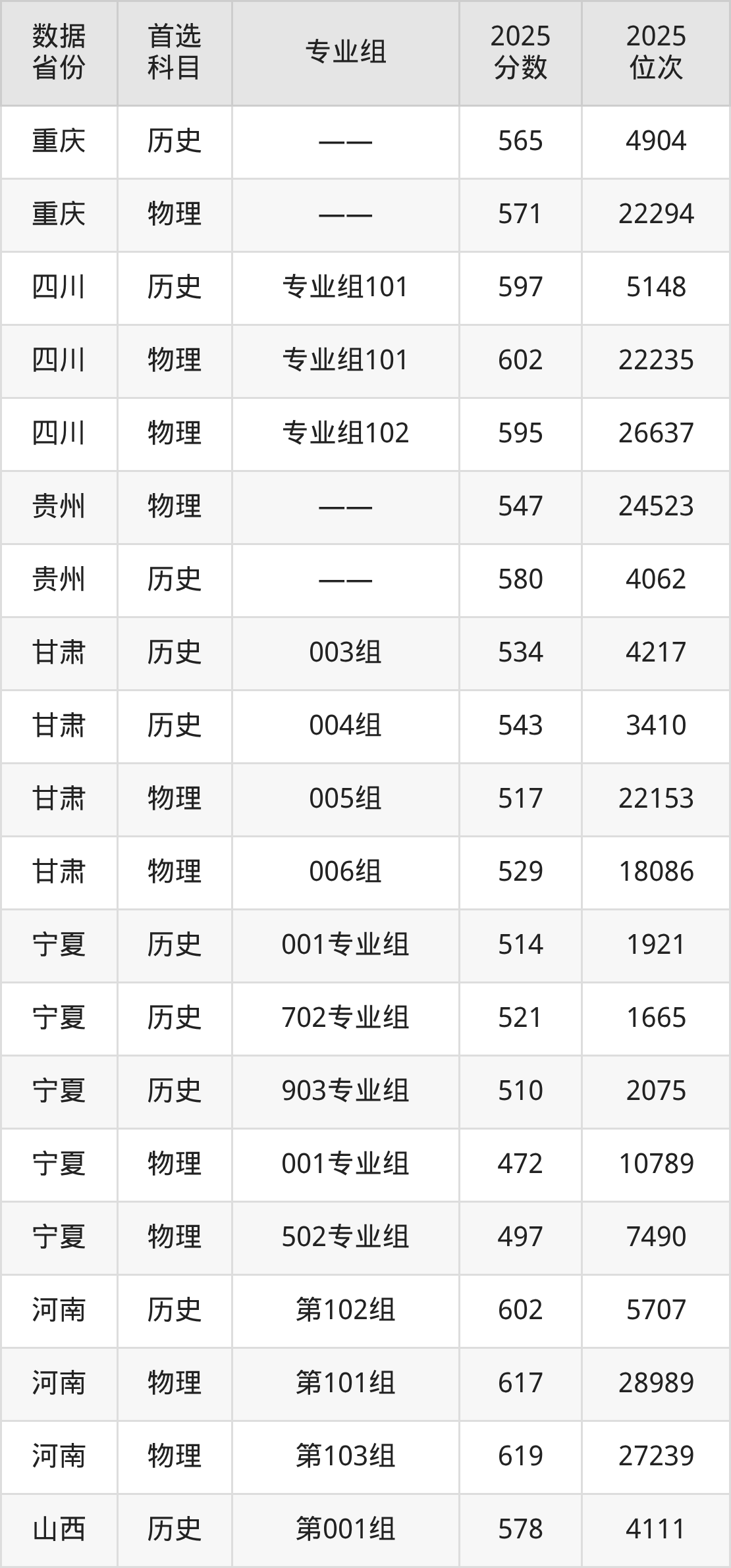 四川:历史组597分、物理组595分;