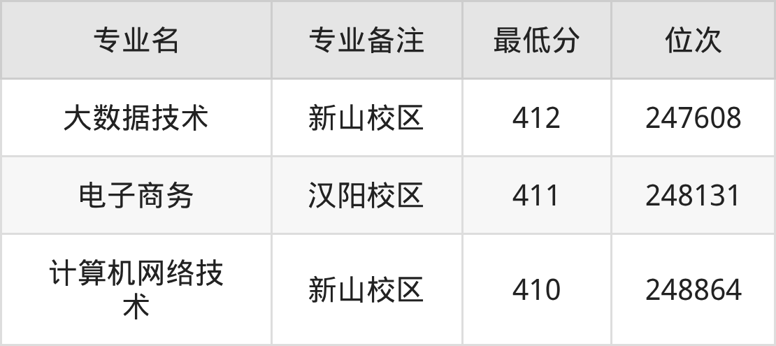 2、电子商务(汉阳校区):411分、位次248131名;