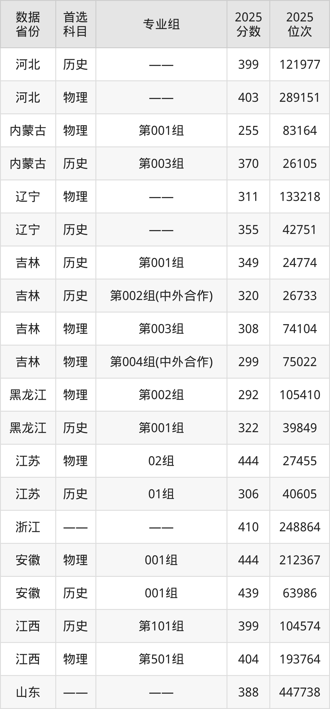 吉林:历史组320分、物理组299分;