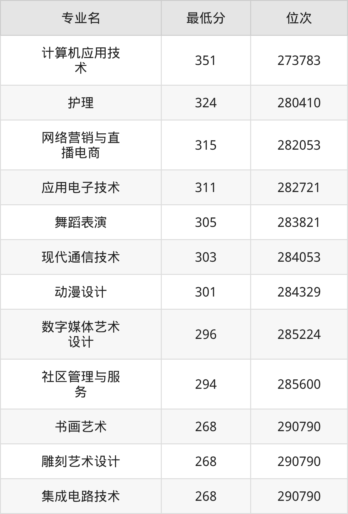 1、计算机应用技术:351分、位次273783名;