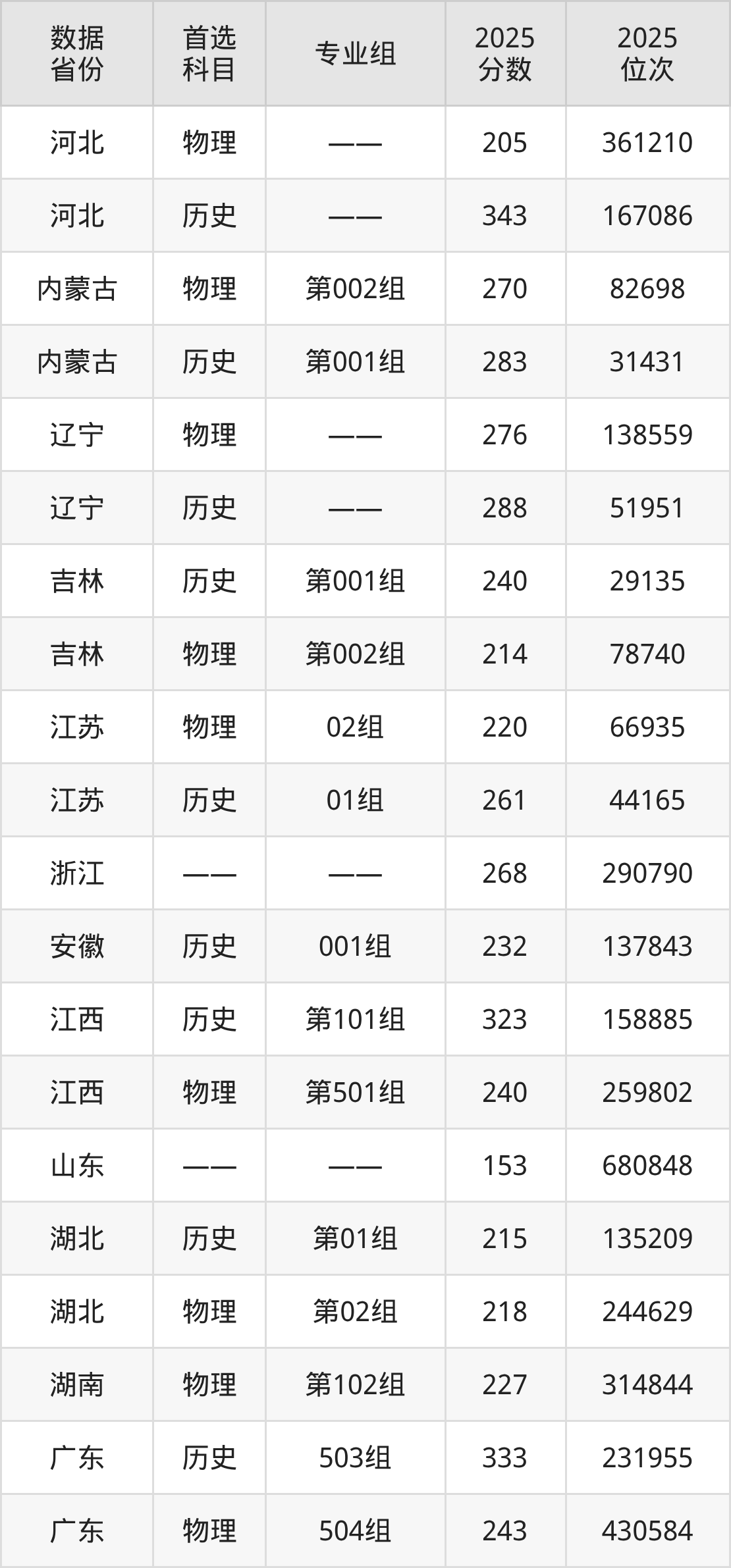 河北:物理组205分、历史组343分;