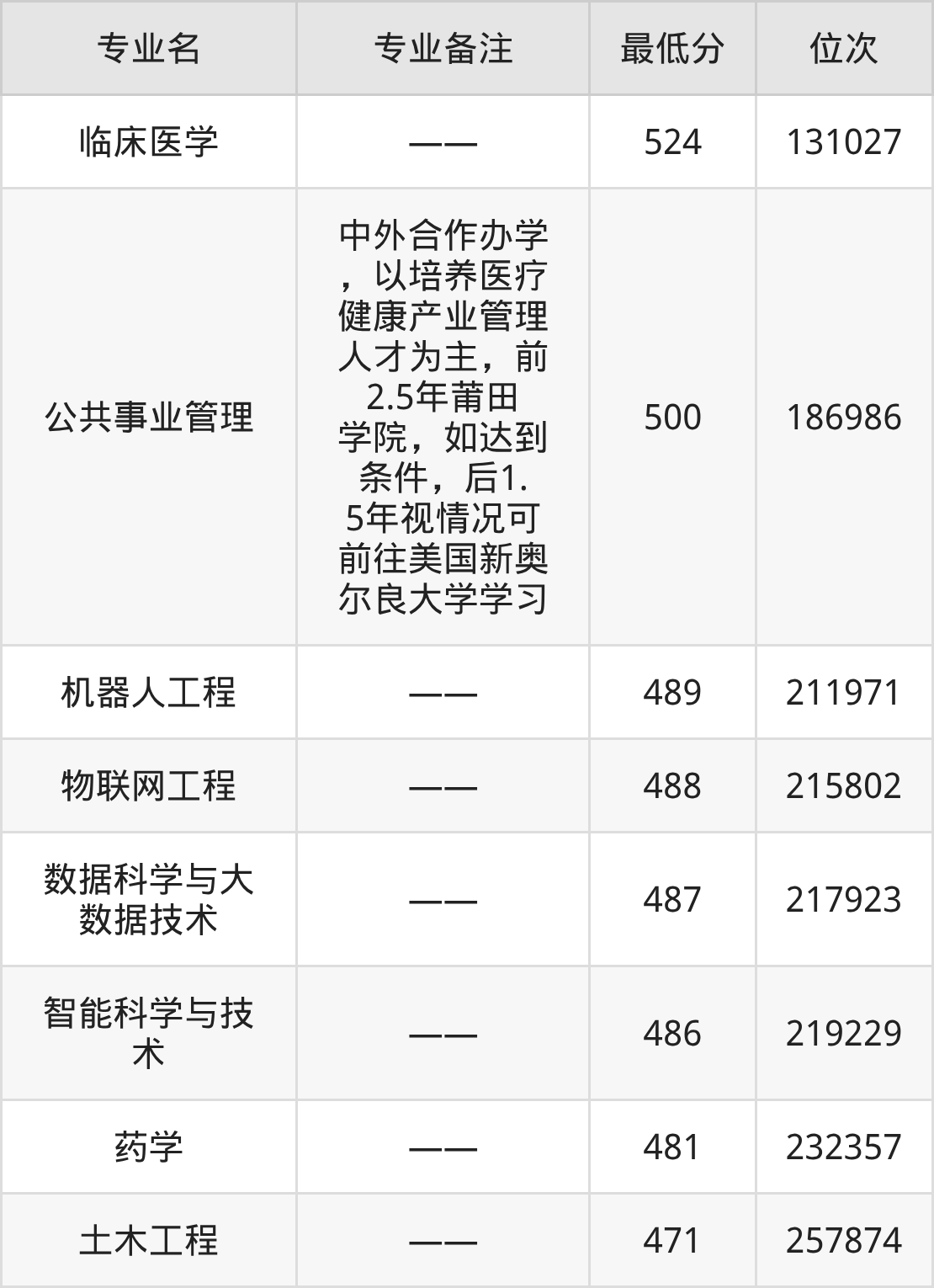 下面是莆田学院各省最低分汇总,各专业组录取分数线可参考下方图片: