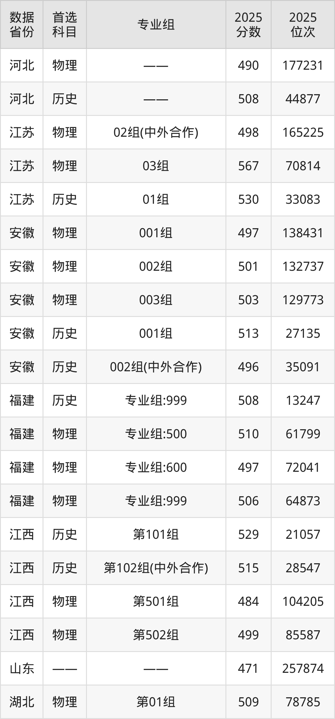 2025年莆田学院全国录取分数线是363分到577分之间,其中在福建省录取最低分:历史组508分、物理组497分。参考山东招录数据,各专业分数线是:临床医学524分、公共事业管理(中外合作办学)(以培养医疗健康产业管理人才为主)(前2.5年莆田学院)500分、机器人工程489分等。