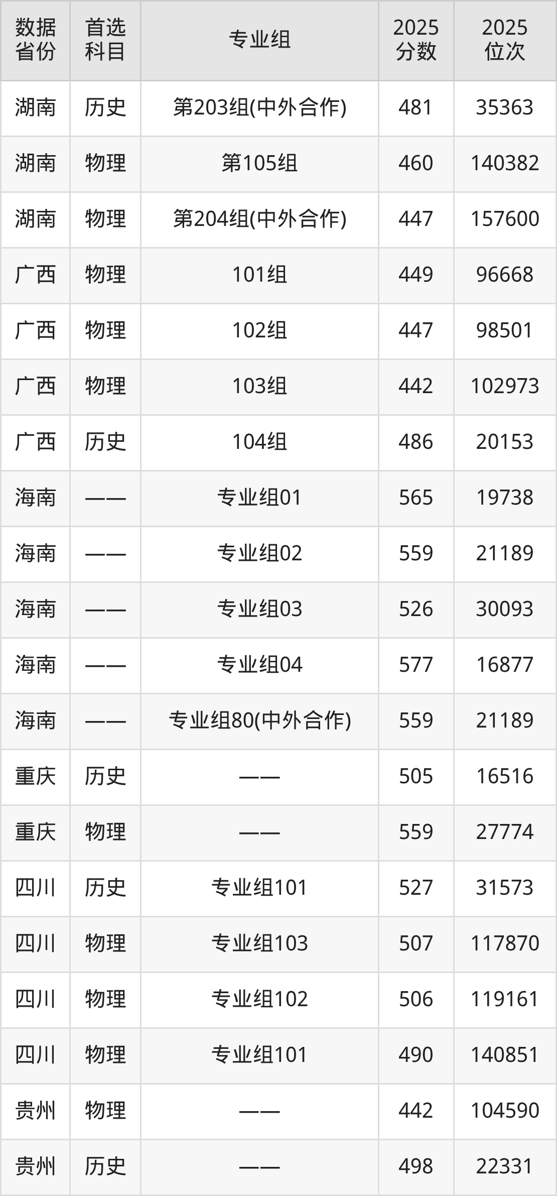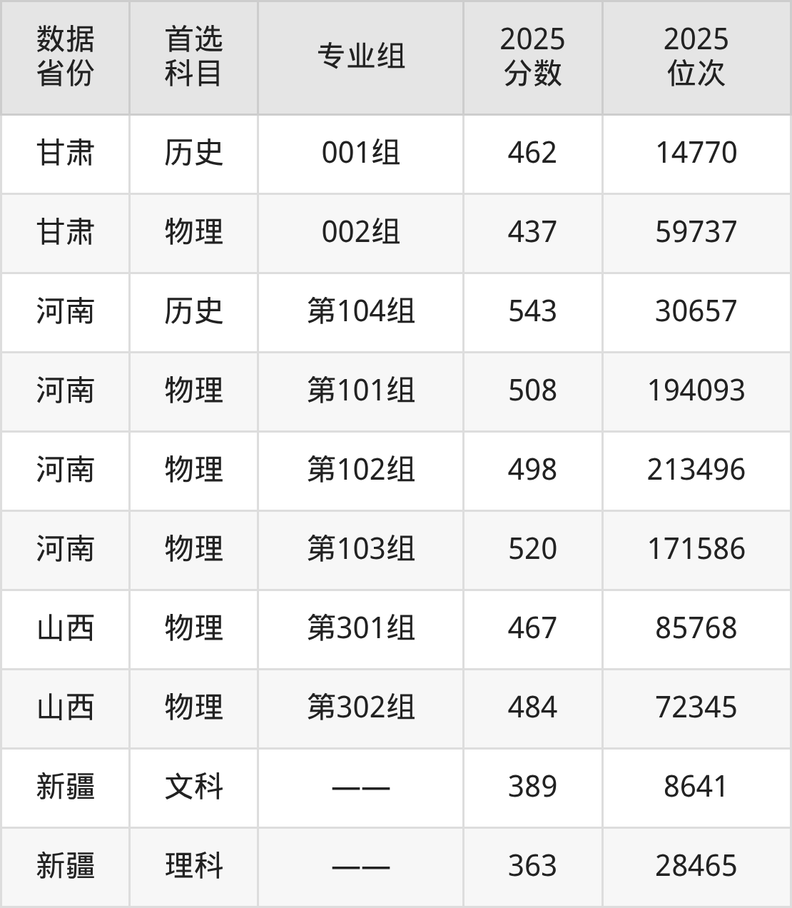 2025年莆田学院全国录取分数线最低是363分,最高是577分,平均分在497分左右。在多数地区录取最低分均超过440分。低于440分能上的地区只有甘肃和新疆,高于平均值较多的是重庆、河南、江苏和四川等地,均有专业组最低分在527分及以上。