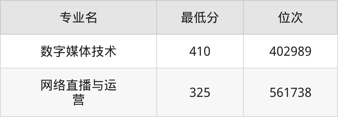 2025年吉安幼儿师范高等专科学校招生专业共计2个,其中录取分数线最低的专业是网络直播与运营,2025年最低分是325分,位次排名是561738名。而该校最难考的专业是数字媒体技术,2025年最低分410分,位次402989名。