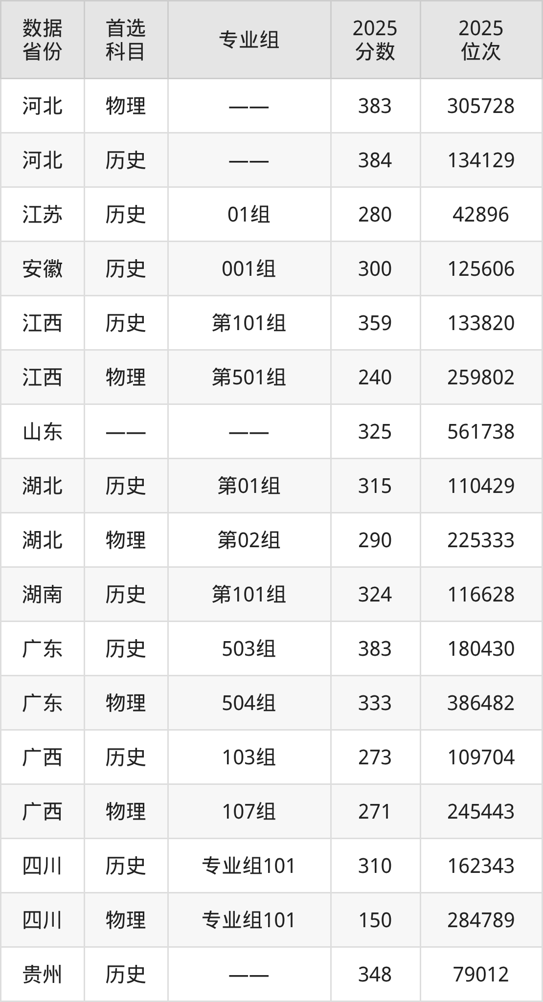 下面是吉安幼儿师范高等专科学校各省最低分汇总,各专业组录取分数线可参考下方图片: