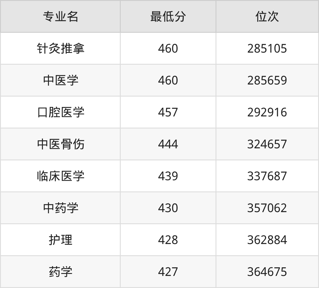 2、中医学:460分、位次285659名;