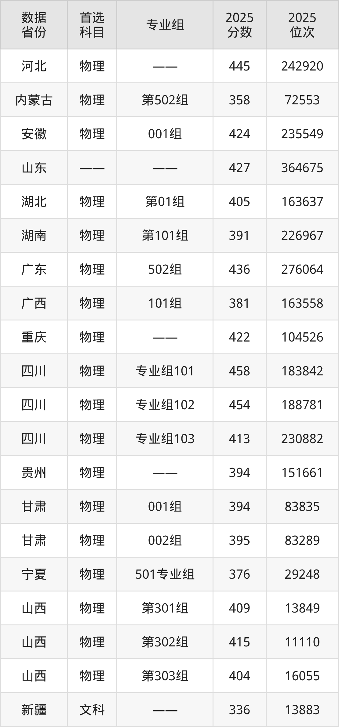| 物理 | 预防医学 | 执行省属高校 少数民族地区 加分办法2 | 48 |