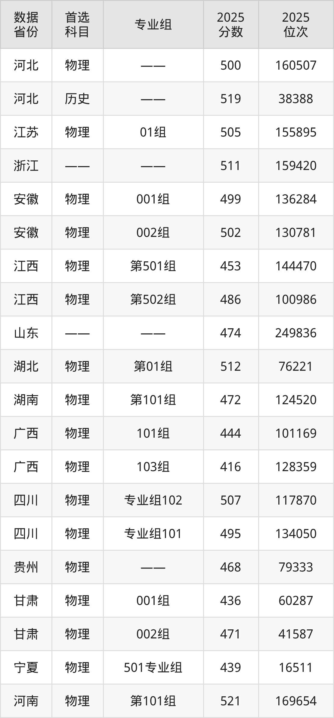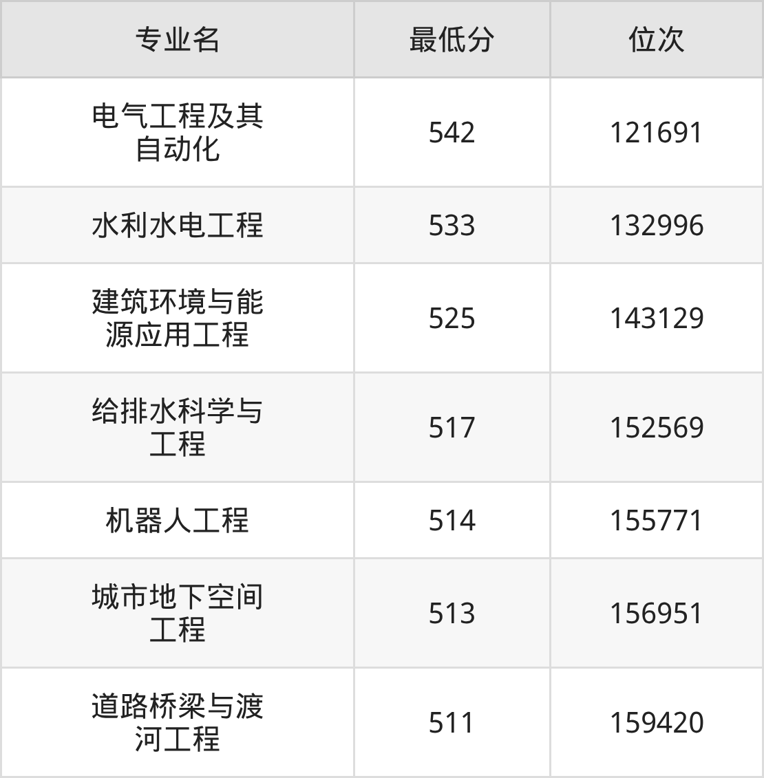 下面是河北水利电力学院各省最低分汇总,各专业组录取分数线可参考下方图片: