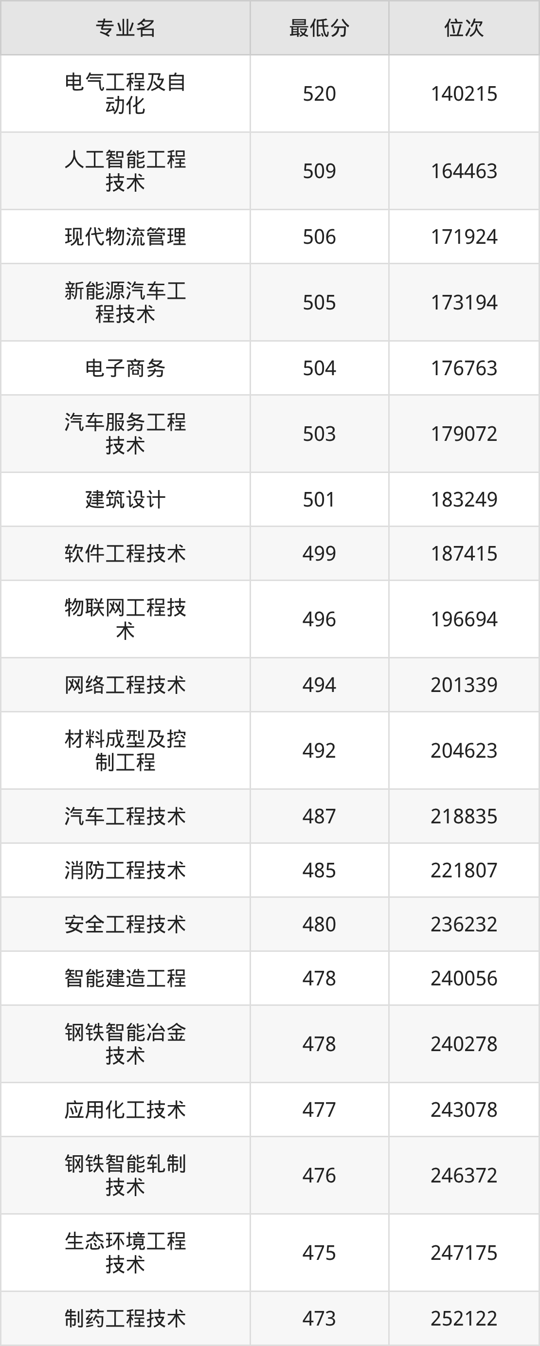 1、电气工程及自动化:520分、位次140215名;