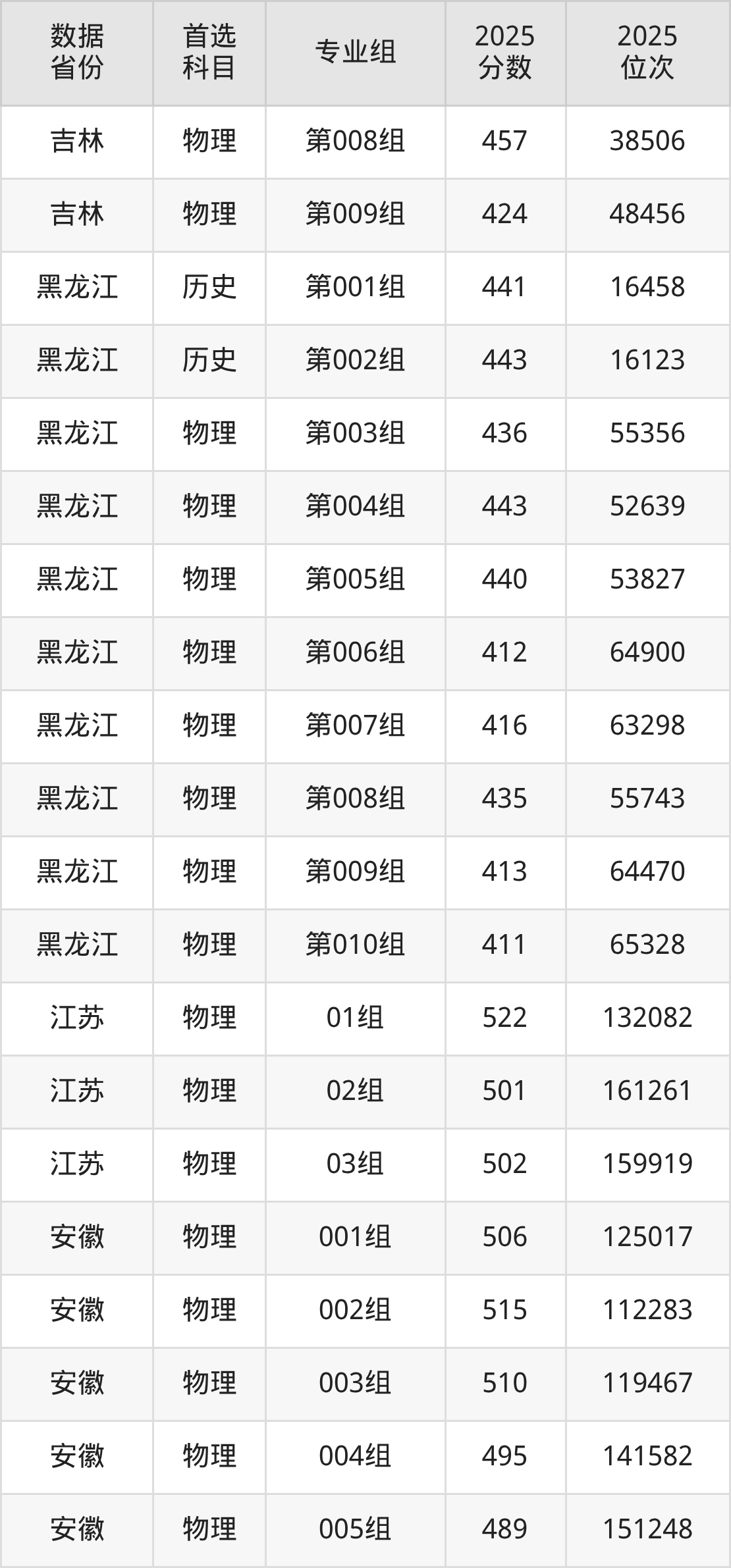 黑龙江:历史组441分、物理组411分;