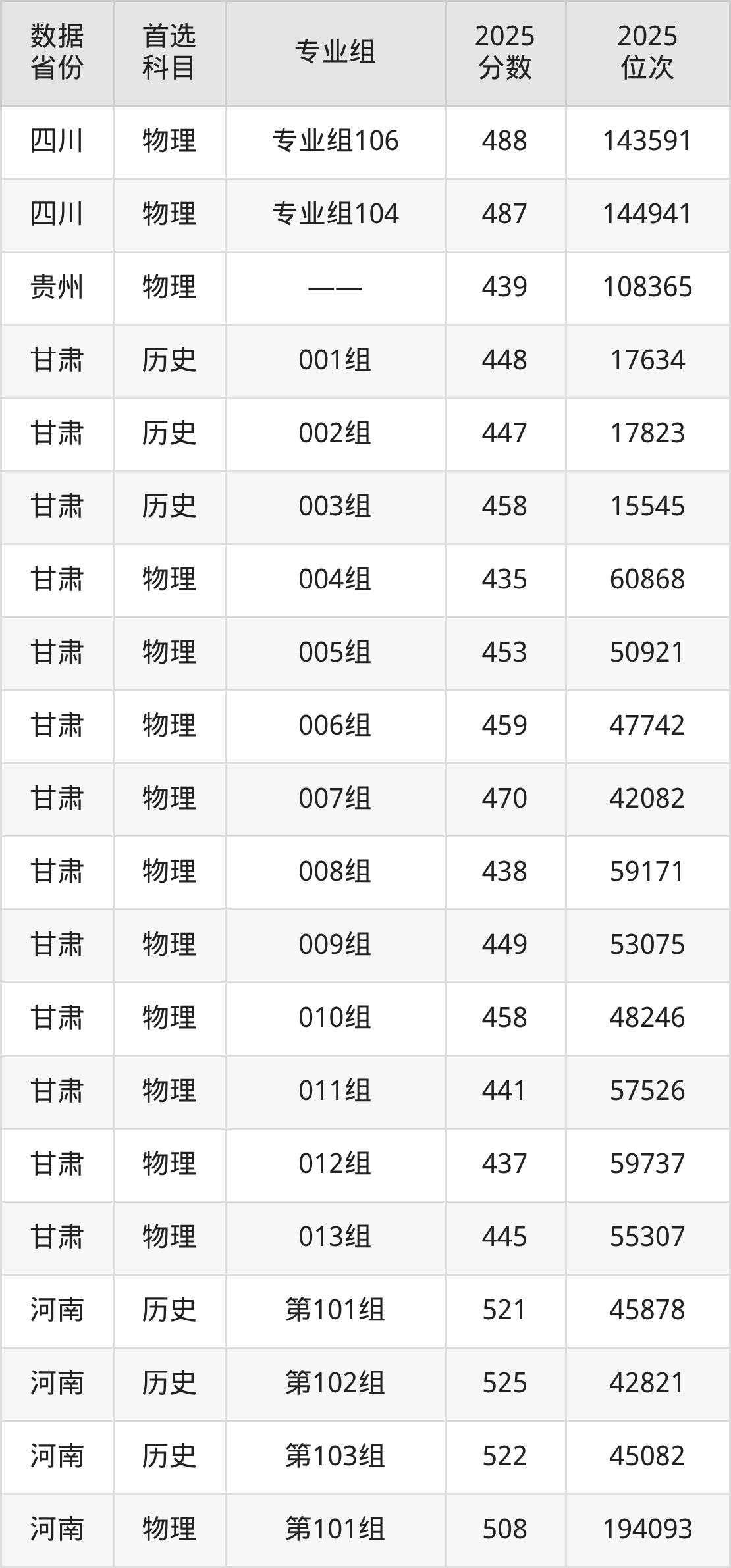 甘肃:历史组447分、物理组435分;
