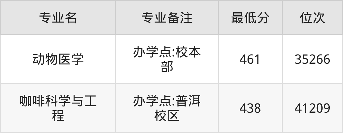 2、咖啡科学与工程(办学点:普洱校区):438分、位次41209名。